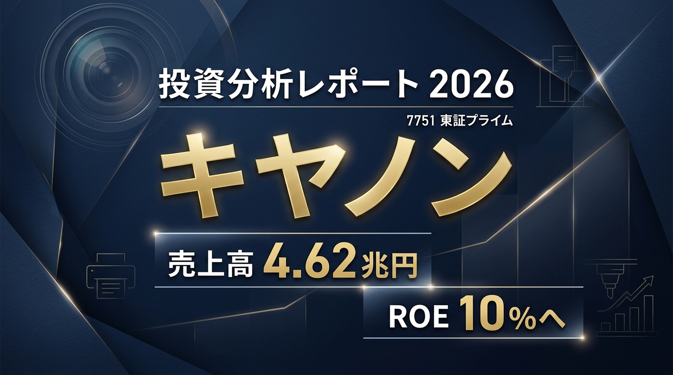 キヤノン(7751)投資分析レポート キヤノン(7751)投資分析レポート 作成日: 2026-04-08 / 東証プライム / 電気機器 キヤノンは、プリンティングを土台にしながら、カメラ・ネットワークカメラ・メディカル・半導体製造装置へと収益源を広げている総合映... -