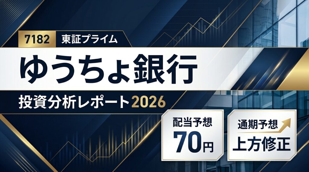 ゆうちょ銀行(7182)投資分析レポート ゆうちょ銀行(7182)投資分析レポート 作成日: 2026-04-08 / 東証プライム / 銀行業 ゆうちょ銀行は、全国の郵便局ネットワークを背景に巨大な預金基盤を持つ国内有数のリテール金融機関です。足元では国内金利上昇... -