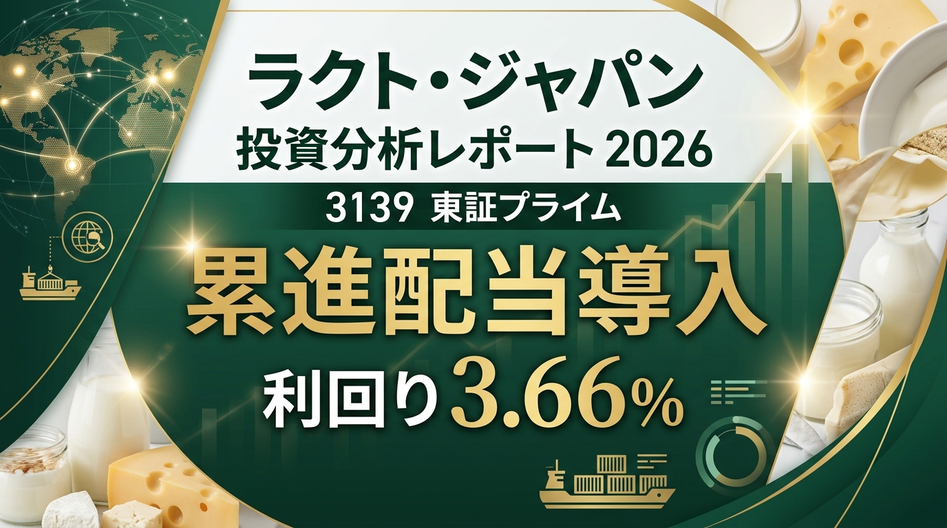 2025年11月期は過去最高益、2026年11月期は投資先行で減益予想という一見地味な構図ですが、中期経営計画で示した方向性は明快です。アジアでの加工・製造強化や高付加価値商材の拡大が実を結べば、将来的には利益の質が変わる可能性があります。高配当で待ちながら、事業の質的転換を追う銘柄として注目に値します。 [Source](https://data.swcms.net/file/lactojapan-corp/dam/jcr:2e380ffd-70bb-4771-9182-2556b2d3f910/140120260108530911.pdf) [Source](https://www.lactojapan.com/ja/ir/news/auto_20260106529454/pdfFile.pdf)