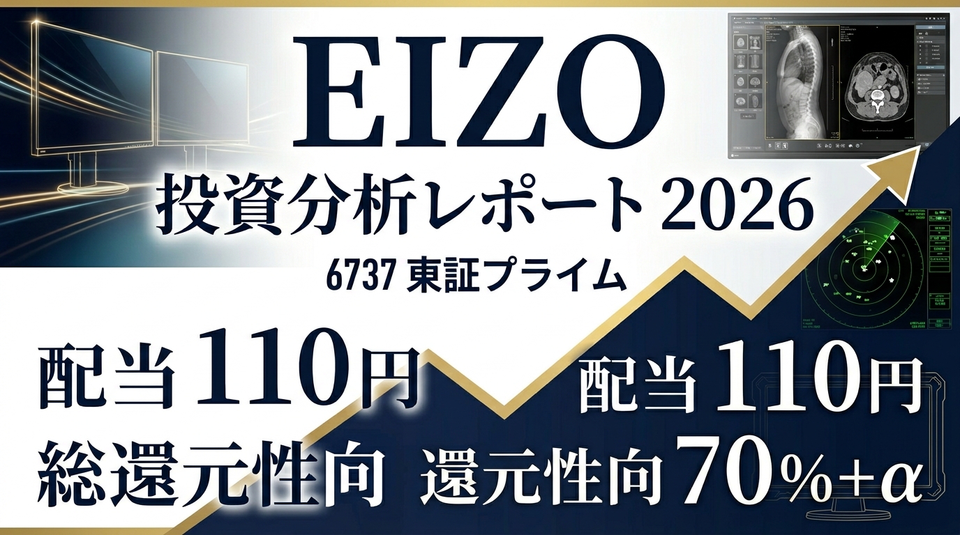 EIZOは、医療・航空管制・防衛など高信頼性が必要な映像分野に強みを持つ、技術力の高いニッチトップ級企業です。足元の業績は順風ではなく、中期計画の数値目標も見直し局面にありますが、その一方で財務基盤は厚く、配当下限105円と総還元性向70%+αという還元政策は極めて魅力的です。[Source] [Source]