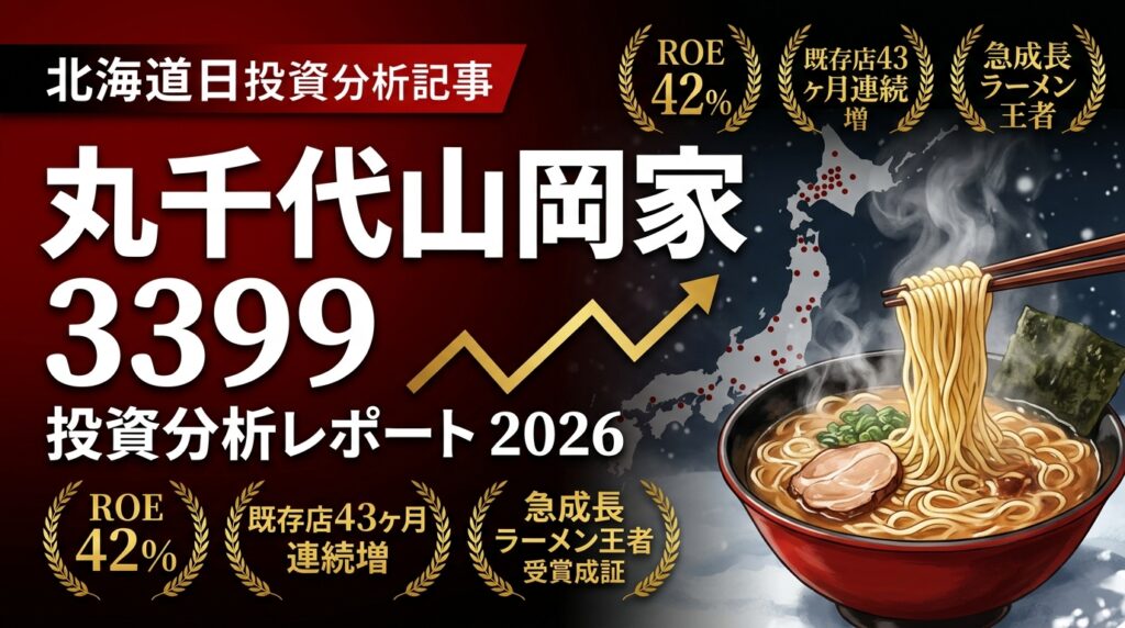 丸千代山岡家(3399)投資分析レポート|北海道発・急成長ラーメン王者の超高ROEと全国300店戦略 🍜 外食セクター / 東証スタンダード / 証券コード 3399 丸千代山岡家(3399)徹底投資分析レポート 北海道発・ラーメン全国制覇への挑戦|ROE 42%・既存...