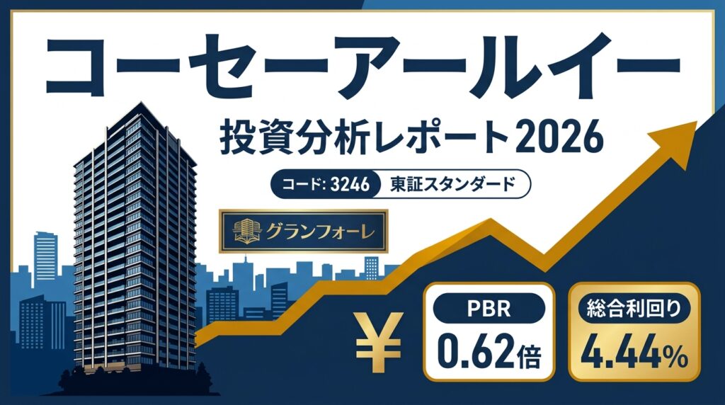 コーセーアールイー(3246)投資分析レポート 2026 🏢 東証スタンダード | コード 3246 コーセーアールイー投資分析レポート 2026 福岡発・グランフォーレブランドの不動産デベロッパー | PBR0.62倍の割安感 | 総合利回り4.44% 株価(2026/3/13) 651円... -
