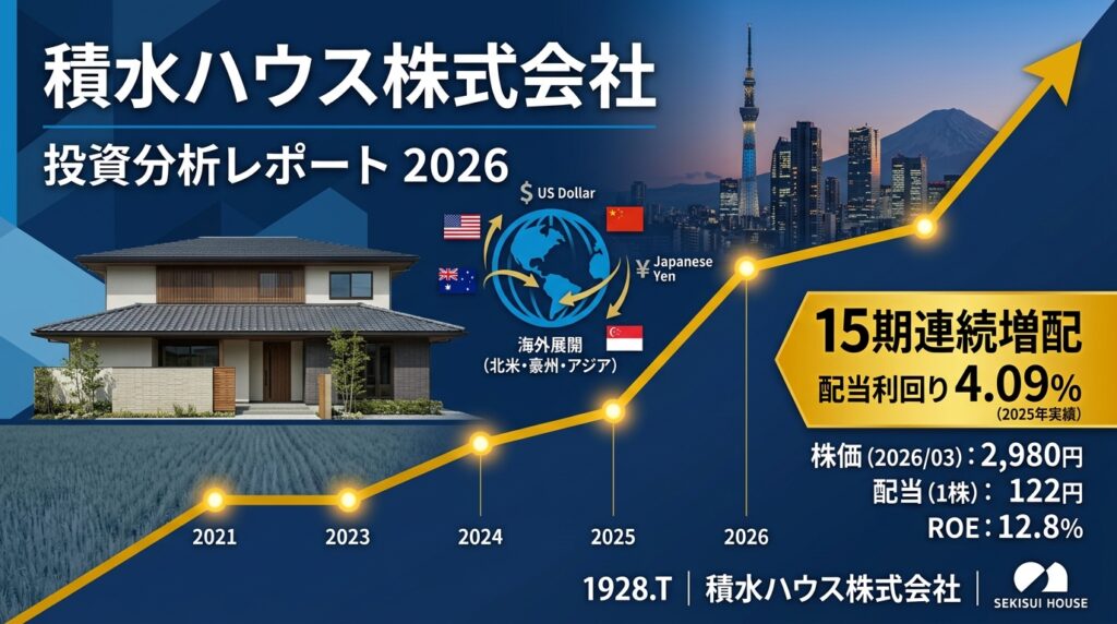 積水ハウス(1928)投資分析レポート 2026 🏠 東証プライム | コード 1928 積水ハウス株式会社投資分析レポート 2026 国内最大手ハウスメーカー|グローバル住宅メーカーへの変革 | 米国MDC買収で飛躍 株価(2026/3) 3,543円 東証プライム上場 時価総額... -