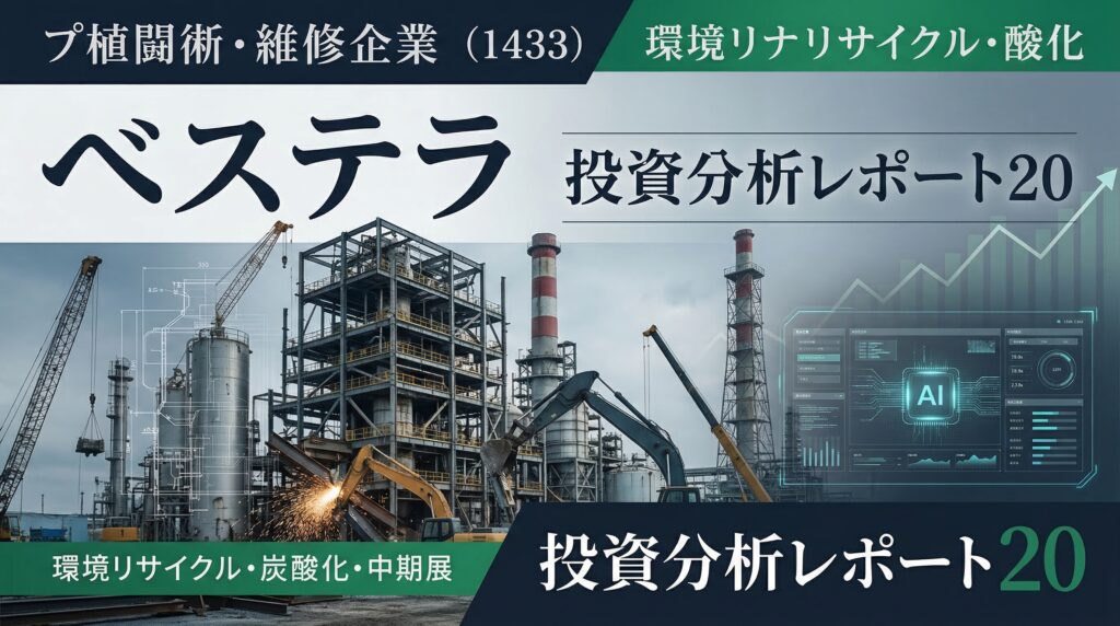 ベステラ(1433)投資分析レポート 東証プライム / 建設業 ベステラ(1433)投資分析レポート プラント解体の専門性、脱炭素需要、AI活用で中長期の成長余地を探る 株価 1,354円 時価総額 約126億円 予想PER 22.10倍 実績PBR 2.27倍 予想配当利回り 2.95% ... -