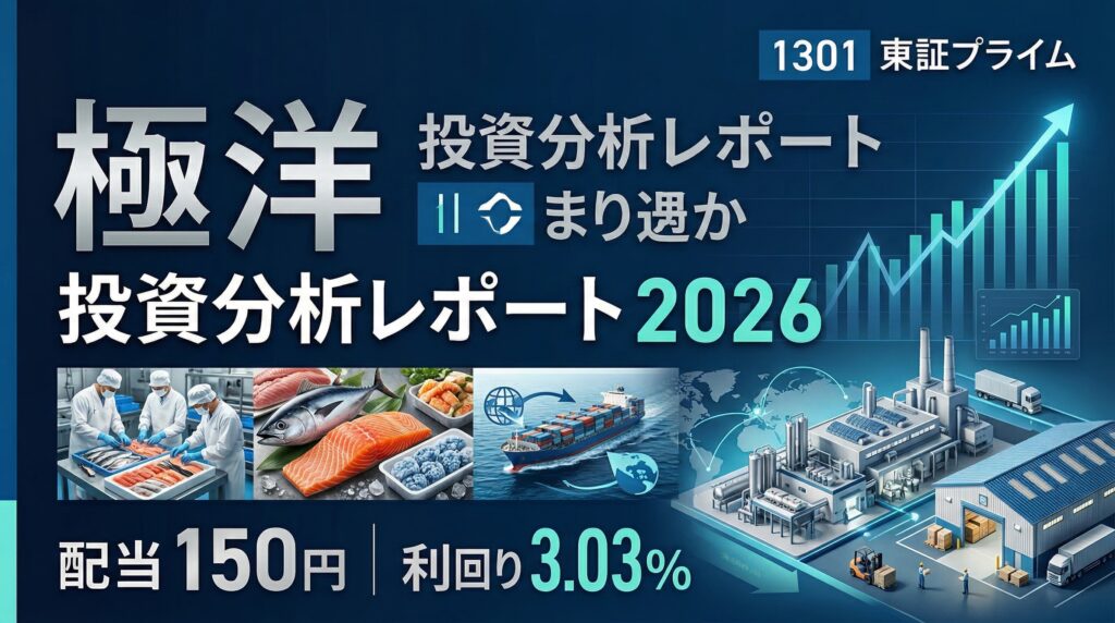 極洋(1301)投資分析レポート 2026 東証プライム 1301 極洋(1301)投資分析レポート 2026 水産・食品の総合企業として、世界中の水産物調達力と付加価値型食品展開を強みに持つ高配当バリュー株。足元は増収ながらコスト高で利益が伸び悩む一方、中期計...