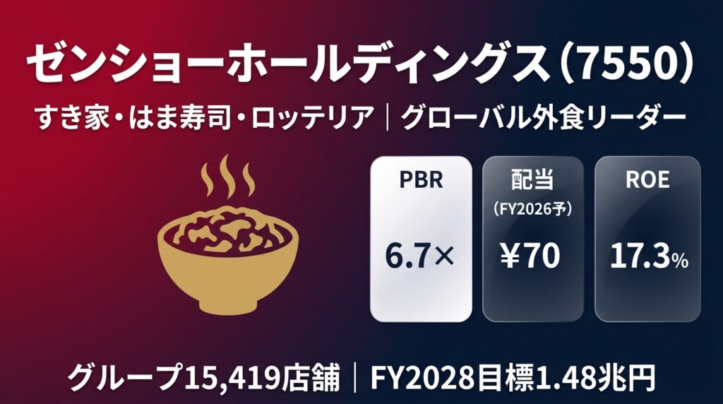 ゼンショーホールディングス(7550)投資分析レポート|すき家・はま寿司を擁する外食世界最大級グループ 東証プライム・小売業 | 証券コード 7550 ゼンショーホールディングス すき家・はま寿司・ロッテリアなど16以上のブランド|グループ15,419店舗|...