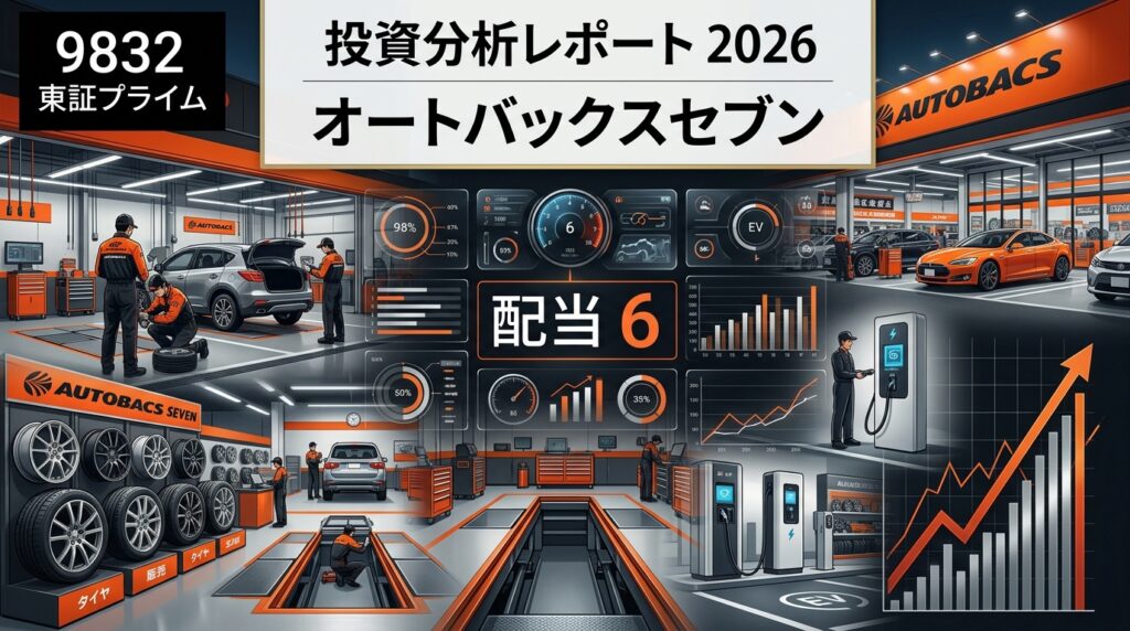 オートバックスセブン(9832)投資分析レポート 2026 東証プライム 9832 オートバックスセブン(9832)投資分析レポート 2026 カー用品小売の定番企業から、車買取・中古車・整備・EV対応・M&Aを通じたモビリティサービス企業へ進化中。高い利益進捗と... -