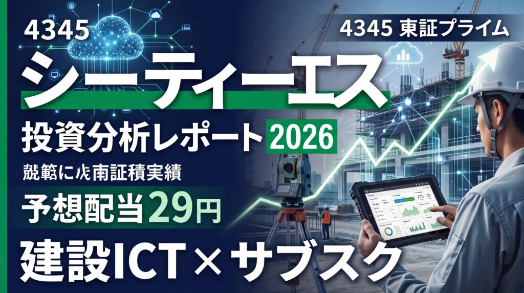 シーティーエス(4345)投資分析レポート 2026 TSEプライム / 4345 / 2026年3月時点整理 シーティーエス(4345)投資分析レポート 2026 シーティーエスは、建設業界に特化したICT・レンタル・クラウドサービス企業です。測量機器レンタルの会社として見る... -