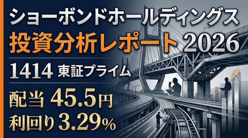 ショーボンドホールディングス(1414)投資分析レポート 2026 東証プライム / 1414 / インフラ補修・補強の専業大手 ショーボンドホールディングス(1414)投資分析レポート 2026 [ショーボンドホールディングス](https://www.sho-bondhd.jp/company/busin... -